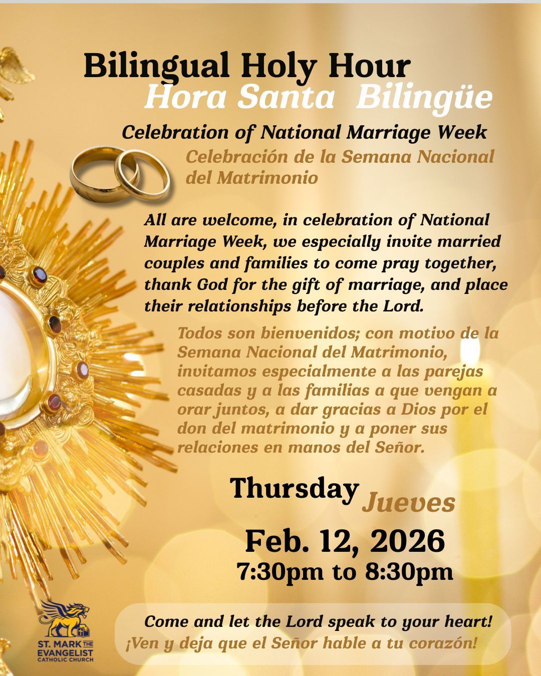 Welcome to St. Mark. I am delighted that you are interested in our Parish and I hope that our website has been of help.